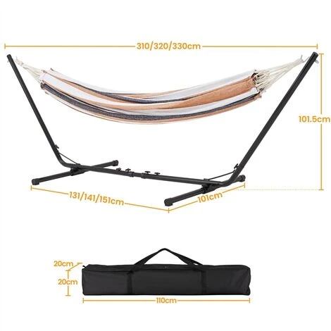 ✔️ Lunghezza regolabile: la lunghezza del supporto dell’amaca è accuratamente progettata per essere regolabile per il suo comfort. Sono disponibili tre lunghezze diverse (310 cm, 320 cm, 330 cm) per soddisfare le vostre diverse esigenze.